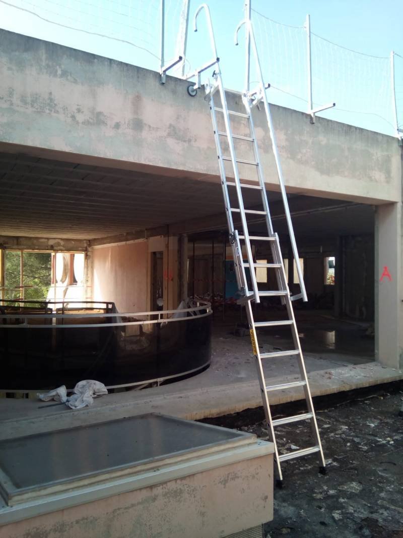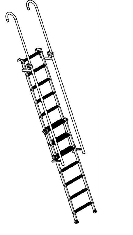 L’accès d’appoint, à marches avec sortie frontale, mains courantes et crosses escamotables pour sécuriser les opérateurs sur des accès bungalow, dalles, containers, skydomes, etc…