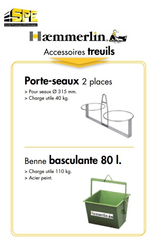 ACCESSOIRES TREUILS PORTE SEAUX  ET BENNE BASCULANTE 80l HAEMMERLIN