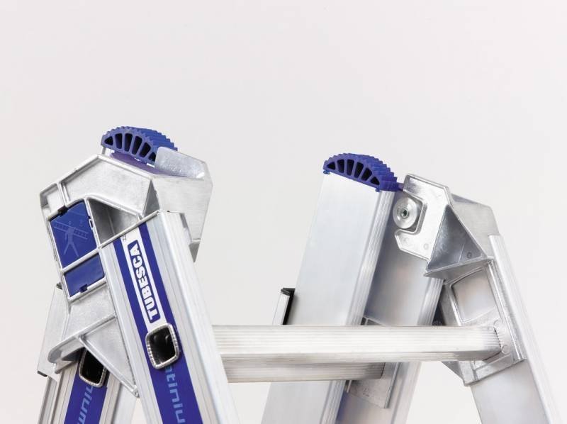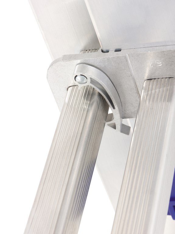 - Les articulations nervurées sont prises au montage dans les montants et les échelons avant sertissage. La liaison de cette échelle PLATINIUM transformable 2 plans est très fiable et hyper-robuste.