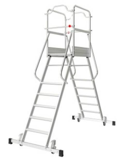- Mise en place précise et déplacement facile sur 4 roulettes escamotables et autobloquantes. 2 plans d’accès à la plate-forme qui limitent les déplacements inutiles