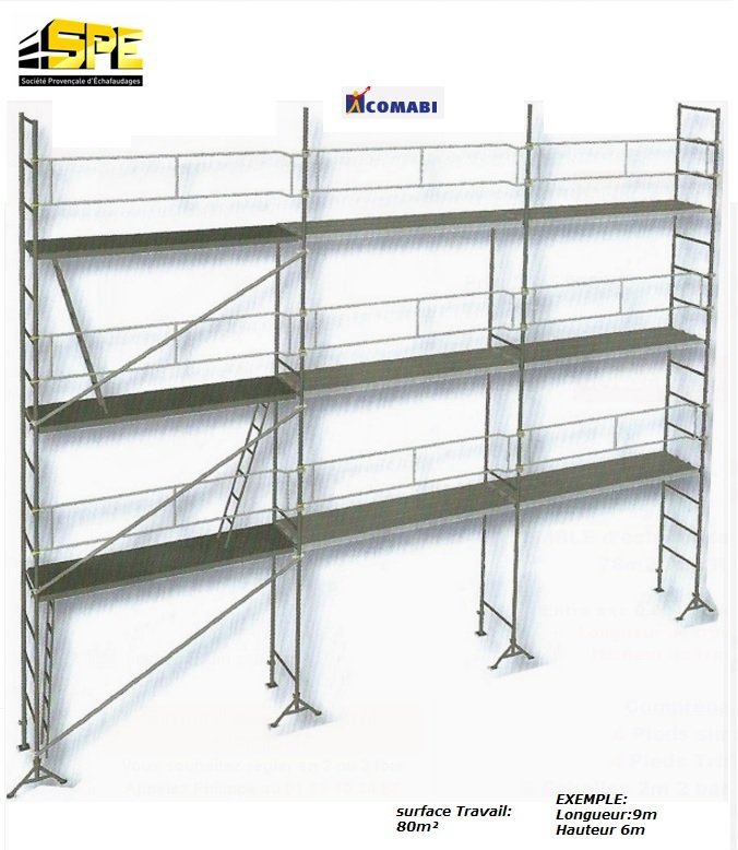 ECHAFAUDAGE DE MACON M49 COMABI GARDE-CORPS MONOBLOC PLANCHERS ACIER SCE 300 VERSION MEDIUM  80m² TOP DES VENTES