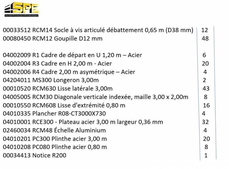 ECHAFAUDAGE FACADE VERSION LISSE DE GARDE-CORPS TUBESCA – COMABI R 200 PROGRESS LOT PRENIUM 160M DE TRAVAIL