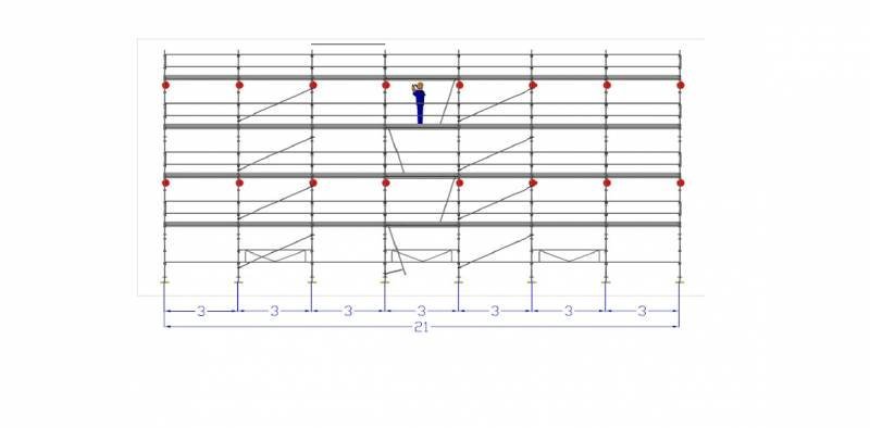 Échafaudage façadier DACAME version lisses et sous lisses long 21m x H 10m de travail