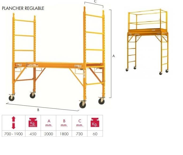 - Plancher en bois réglable de 700 à 1900 mm de haut.