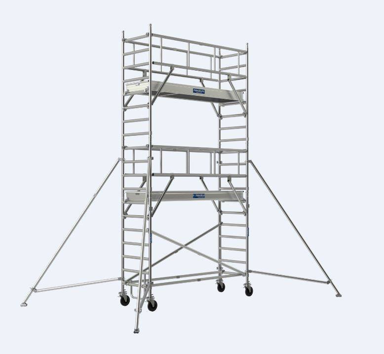 Neolium, Generis, Junior, Totem, Cross, Goliath, Insider, Nano’Tower, X’Tower, dans diverses tailles et dans plusieurs versions. Certains échafaudages sont très compacts, d’autres plus massifs, ou encore télescopiques… La gamme est très variée et complète.