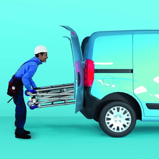 Échafaudage roulant Télescopique NANO TOWER avec son kit de chargement embarqué de Tubesca-Comabi