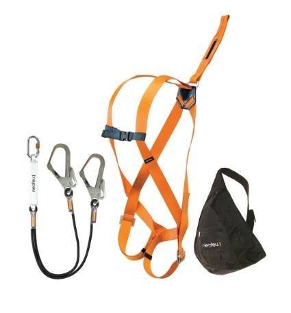 Ce Kit Echaf est composé d’un harnais, d’une longe double, dite « Y », d’un anneau de sangle et de son sac de transport.