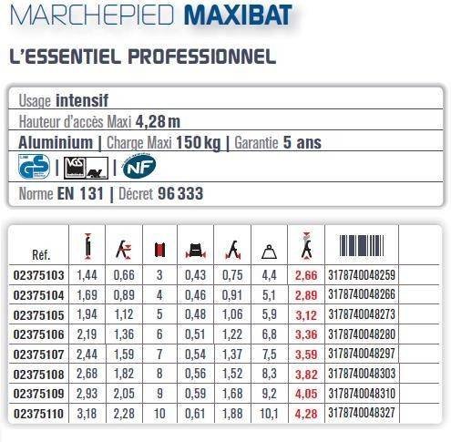 • Le marchepied MAXIBAT DE TUBESCA COMABI a des marches de 80mm striées antidérapantes