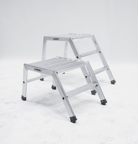 • Marches aluminium antidérapantes, profondeur 80mm, renforcées par un barreau carré de 25 mm