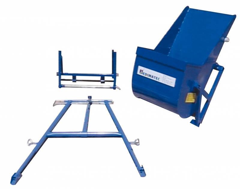 - Ce pack maçon de chez Tubesca-Comabi permet le déversement bas manuel et le déversement haut des matériaux de manière semi-automatique.