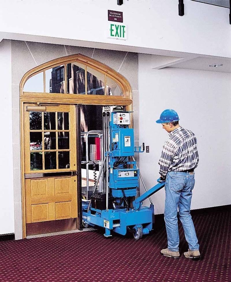 Ce lève-personnes GENIE ®IWP™ est préconisé pour les sols plats, dans les musées, salle de spectacles et/ou l’industrie. Sans stabilisateurs, cette nacelle lestée à stabilisation hydraulique s’installe en quelques secondes et permet de travailler en toute sécurité jusqu’à 11 m.