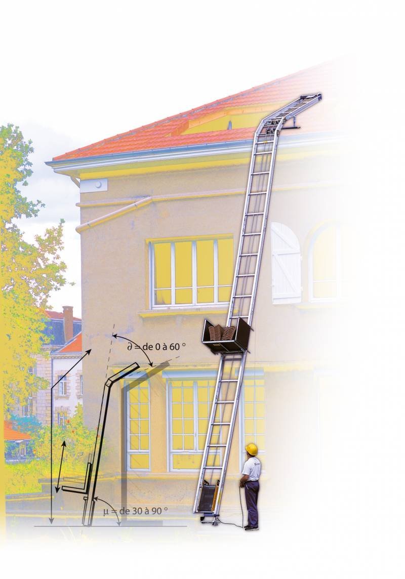- Genouillère du monte-materiaux montana est réglable de 0 à 60° pour tous les toits et toutes les configurations rurales ou urbaines. La position 0° la transforme en échelle simple.Verrouillage très ferme grâce à des plats crantés.