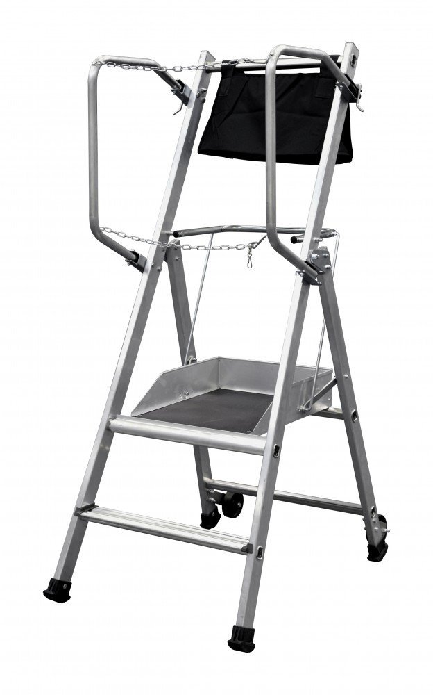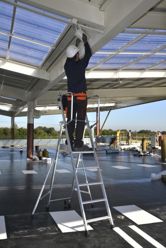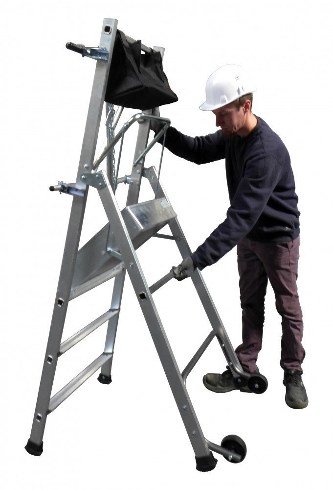 - Roues de déplacements ø 80mm 2 marches = 0.50m plancher- hauteur travail 2m50