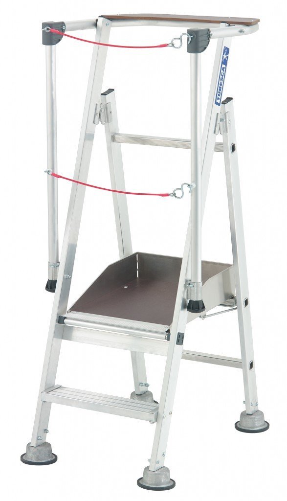 - Accès en sécurité sur des marches* grand confort 100mm, marches de la plateforme STABIL sont en Alu strié antidérapantes