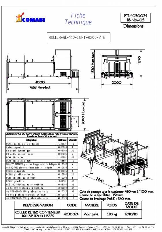 Remorque roller pour echafaudage tubesca comabi 160m² de r200 aluminium ou acier éligible pour les subventions carsat