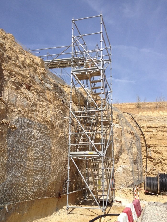 De plus en plus demandé sur les chantiers l’escalier de chantier TUBESCA COMABI est confortable et robuste.Ses accessoires lui permettent de desservir toutes les hauteurs et d’être relié à des passerelles de franchissement.
